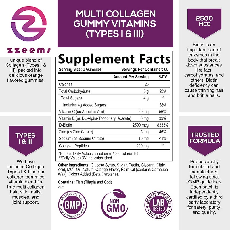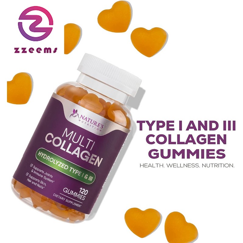 - Extra Strength Collagen Gummies: Nature's Nutrition Collagen Gummies are a tasty, convenient way to support the appearance of your hair, skin, and nails; every serving is packed with 200 milligrams of collagen peptides (types 1 and 3) for complete hair, skin, and nail support