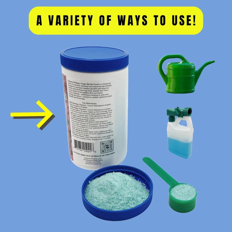 Natures Wisdom Crepe Myrtle Food is a meticulously crafted blend of essential nutrients and minerals, tailored to nurture the vibrant growth and superior blooms of all flowering trees, shrubs, and vines. This specialized fertilizer is formulated to provide your plants with the optimal balance of nourishment they crave, ensuring they thrive and flourish. Whether you're cultivating a lush crepe myrtle tree, a vibrant bougainvillea vine, or a stunning hibiscus shrub, this nutrient-rich food will unlock their full potential. With its carefully calibrated composition, it promotes vigorous foliage growth, abundant blooms, and overall plant vitality. Nourish your garden with Natures Wisdom Crepe Myrtle Food and witness the transformative power of a balanced, tailored feeding regimen. Embrace nature's wisdom and unveil the true beauty of your flowering plants.