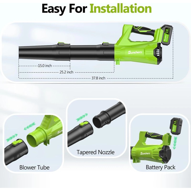 • [Easy to Assemble and Operate] Assembling our blower is effortless. Just insert the battery, attach the blower tube, and press the start switch to power up the cordless leaf blower, making it ideal for home and yard use. If you have any problem, please feel free to contact us. We will solve your problem.