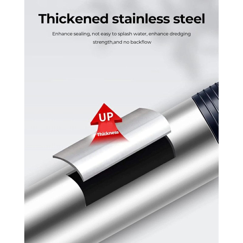 - SAFE AND DURABLE: Constructed with a stainless steel shell and a non-slip ABS handle, the high-pressure toilet unclogger features a natural rubber drain nozzle that is tough and long-lasting. You won’t have to worry about deformation or rust