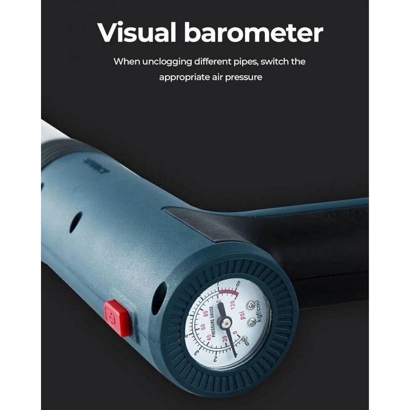 - VISIBLE AIR PRESSURE GAUGE: Equipped with air pressure gauge, the toilet air plunger allows you to easily monitor and adjust the air pressure intensity based on your needs. Be sure to select the appropriate pressure for the plug, as outlined in the manual