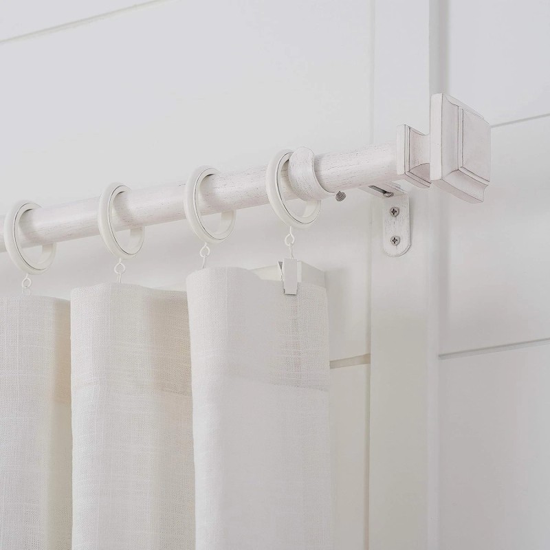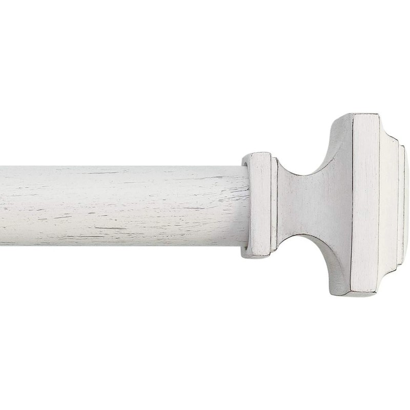 Farmhouse Collection 1 1/8" Diameter Curtain Rod Set with Cottage Square Curtain Rod Finials and Steel Wall Mounted Adjustable Curtain Rod, Fits 36” to 72” Windows, Weathered White