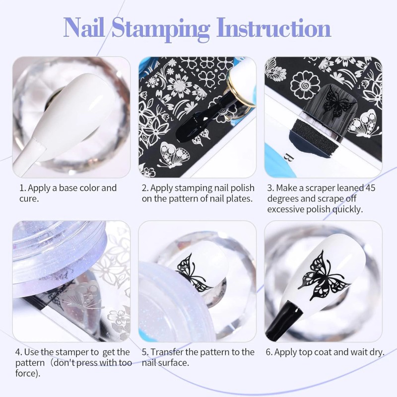 - 【Quality Material & DIY Freely】Born Pretty nail stampers nail art stamping template have a premium quality.Silicone Stamping head, easy to reach the edge of most curved nails easily, Super easy to hit the desired location on your nails,pick up patterns from plates easily.