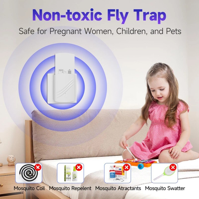 - 【PLUG-IN DESIGN & QUIET】Simple electric operation - just plug into any standard wall outlet for continuous pest control coverage. This fruit fly insecticide utilizes light to attract mosquitoes without making any sound. Create a quiet sleeping environment for you.