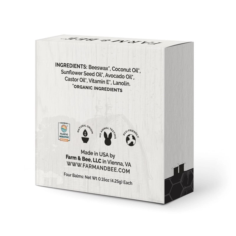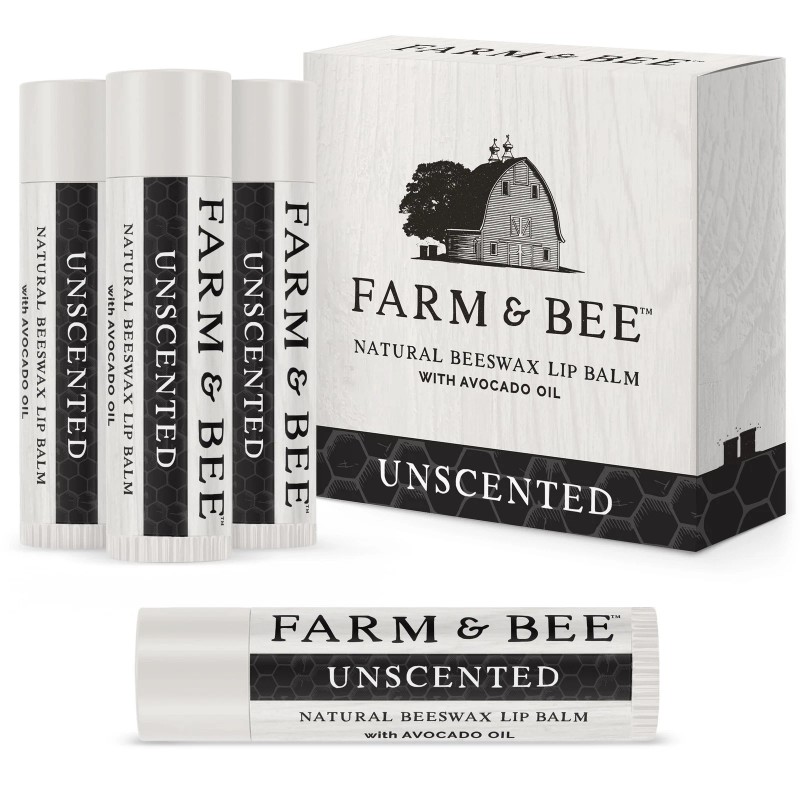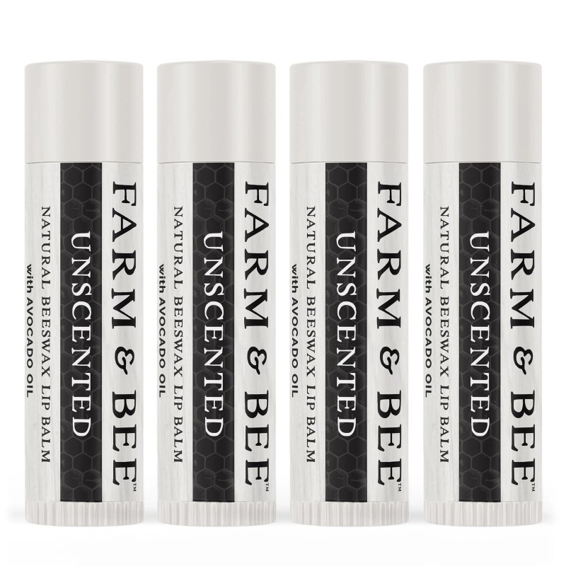 Natural Lip Balm - Organic & Natural Ingredients - Beeswax Based Moisturizing Lip Care Chapstick for Chapped Lips - Great Gift Idea - Farm & Bee - 0.15oz (Pack of 4 - Unscented)