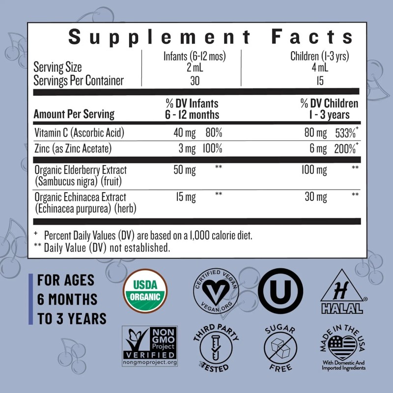 • πŸ’-𝐒𝐧-𝟏 π’π”πππŽπ‘π“ π…πŽπ‘ ππ€ππ˜ & π“πŽπƒπƒπ‹π„π‘ πˆπŒπŒπ”ππ„ π’π”πππŽπ‘π“: Elderberry Drops are packed with antioxidants and vitamins and are a must-have in your wellness toolkit. With a splash of liquid Vitamin C, a sprinkle of Zinc, and a dash of Echinacea, you can easily mix them into your little one’s daily routine for year-round support.