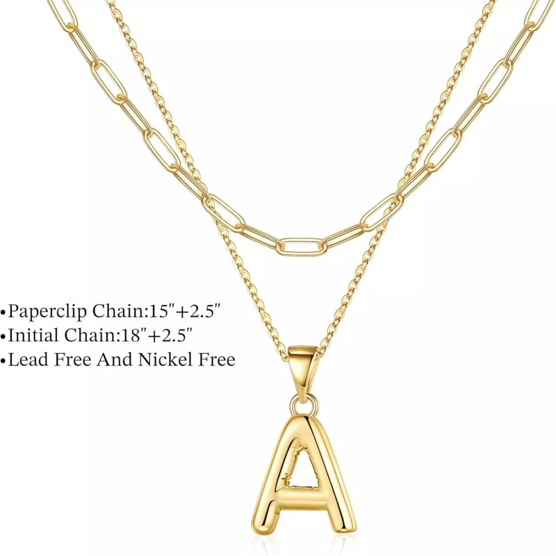 Does not apply Personalized Bubble Letter Necklace - Layered Gold Initial Necklaces for Women,