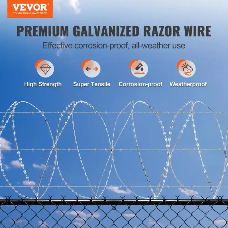 - High-quality hot-dip galvanized: the top-quality hot-dip galvanized razor wires ensures high strength, excellent corrosion resistance and a longer lifespan, it can withstand harsh weather conditions throughout the-year