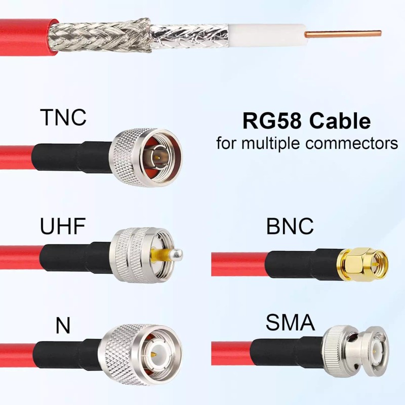 - Compatibility : This rg58 cable work with 50 ohm impedance device and application. It can be combined with connectors to form low-loss jumpers , such as N connector, SMA connector, UHF connector, BNC connector,TNC connector.