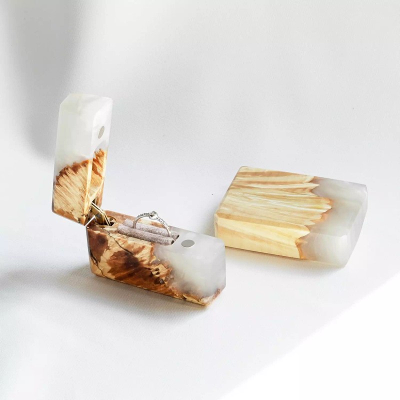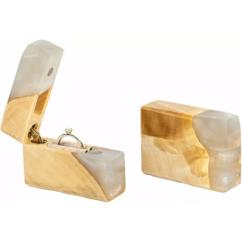 - Handcrafted Elegance: Our unique ring case box combines epoxy and wood, creating a stunning jewelry holder. Ideal for any bride-to-be, this ring box doubles as a ring holder and ring storage box, making it an ideal engagement ring box for unforgettable proposals.
