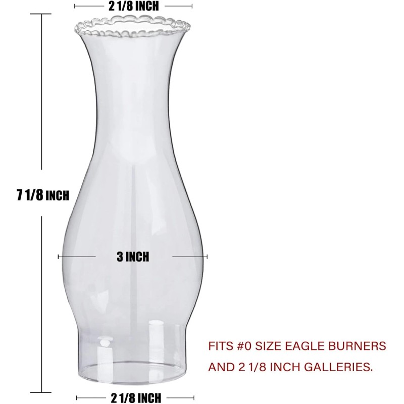 • Oil Lamp Chimney size 2 1/8 Inch Base 7 1/8 Inch Height.