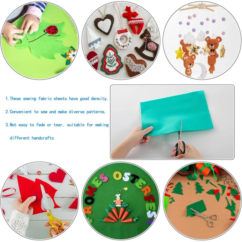 - 【Versatile Felt Creative Craft】These soft felt sheets can be used more broadly than you imagine. It is a perfect DIY felt idea, can be applied to make handicrafts and decorations, great for making Christmas ornaments to create a Christmas atmosphere, perfect for creative craft projects, decorations, quiet books, and more!