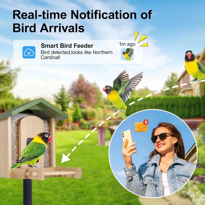 - 【AI Bird Recognition】Yungeln smart bird feeder with camera can auto-capture & Identify all coming birds,can recognize 10000+ species of birds.After a paid subscription ($3.99/month) on app,can learn more about the identified birds.And you will receive real-time notifications of feather visitors via the phone app. Whether you are a novice or a bird watcher yourself,Through the Yungeln bird feeder camera it can help you better know birds in nature.(30 days free try)