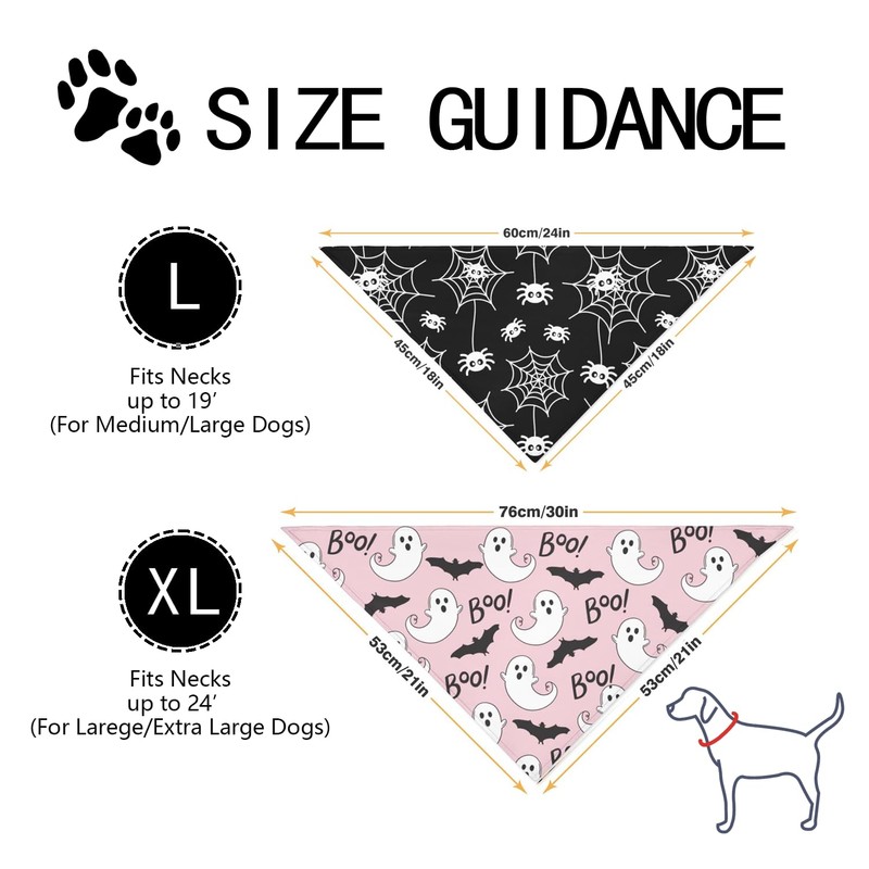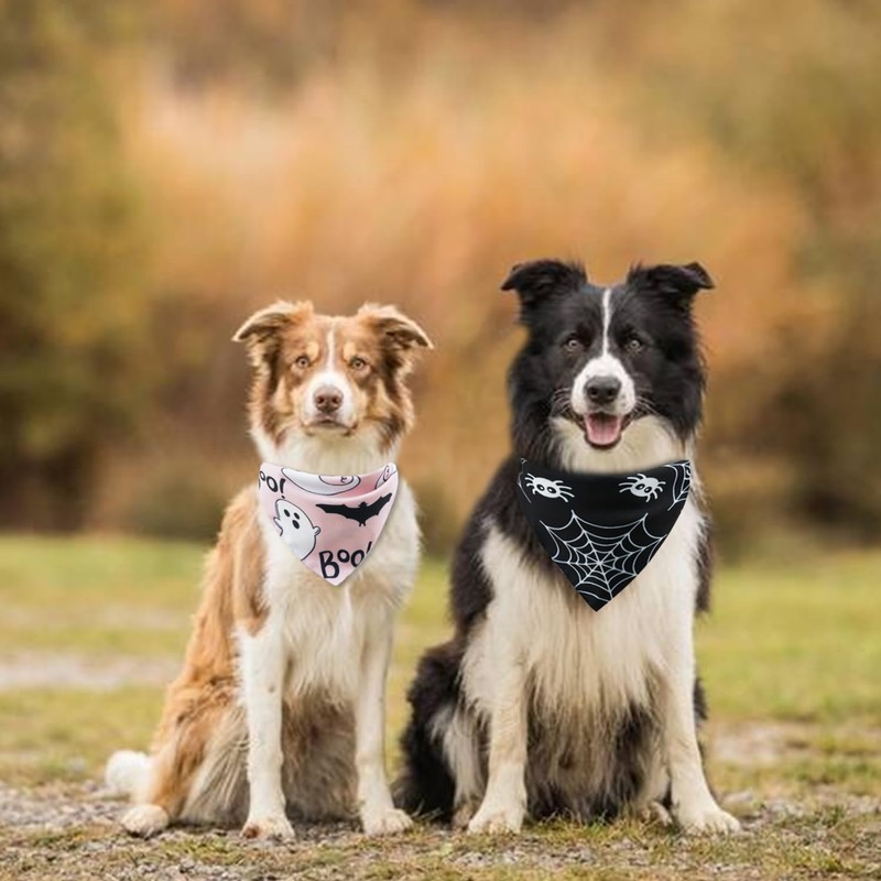 - Halloween Decor: Our halloween dog bandanas are designed with black spider and cute pink ghost, two different patterns, unique design, full of festive atmosphere, make your dog the highlight in the crowd