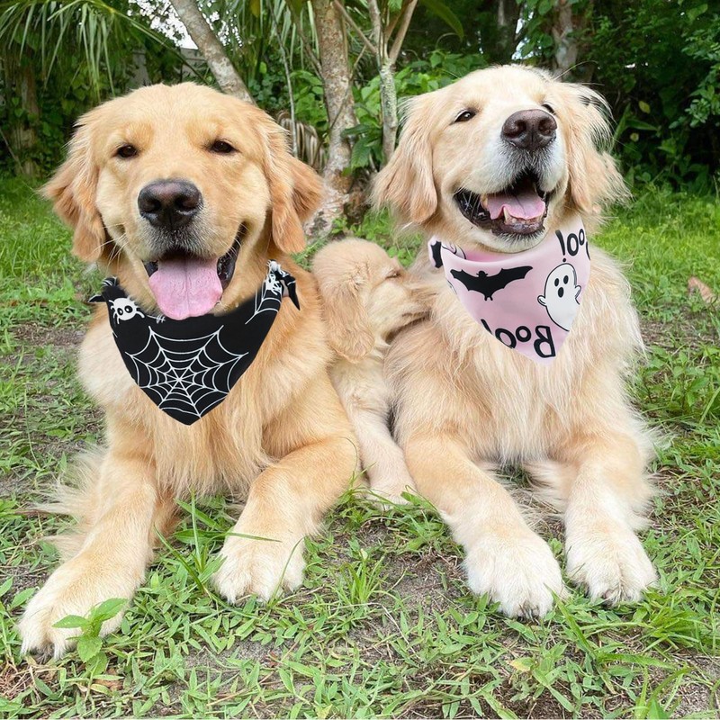 Dog Bandanas - 2 Pack Black & Pink Halloween Ghost Spider Pet Scarf, Soft & Comfortable Polyester Fabric, for Small, Large & Extra Large Dogs & Cats