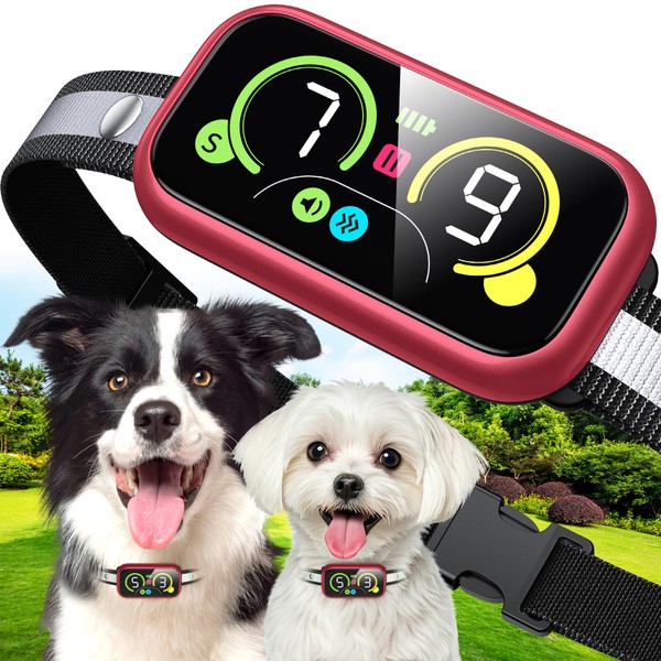 Dog Bark Collar for Large Medium Small Dogs, Smart Barking Collar, Effective No Bark Collar with Adjustable Beep Vibration Correction Modes, Automatic Anti Barking Device, IP67 Waterproof, Red