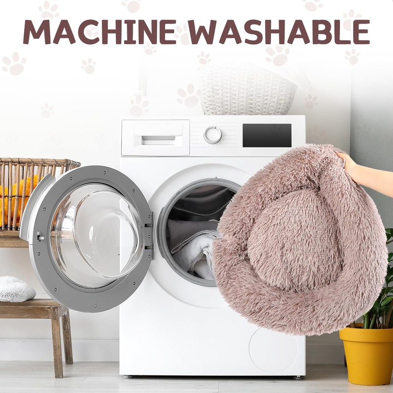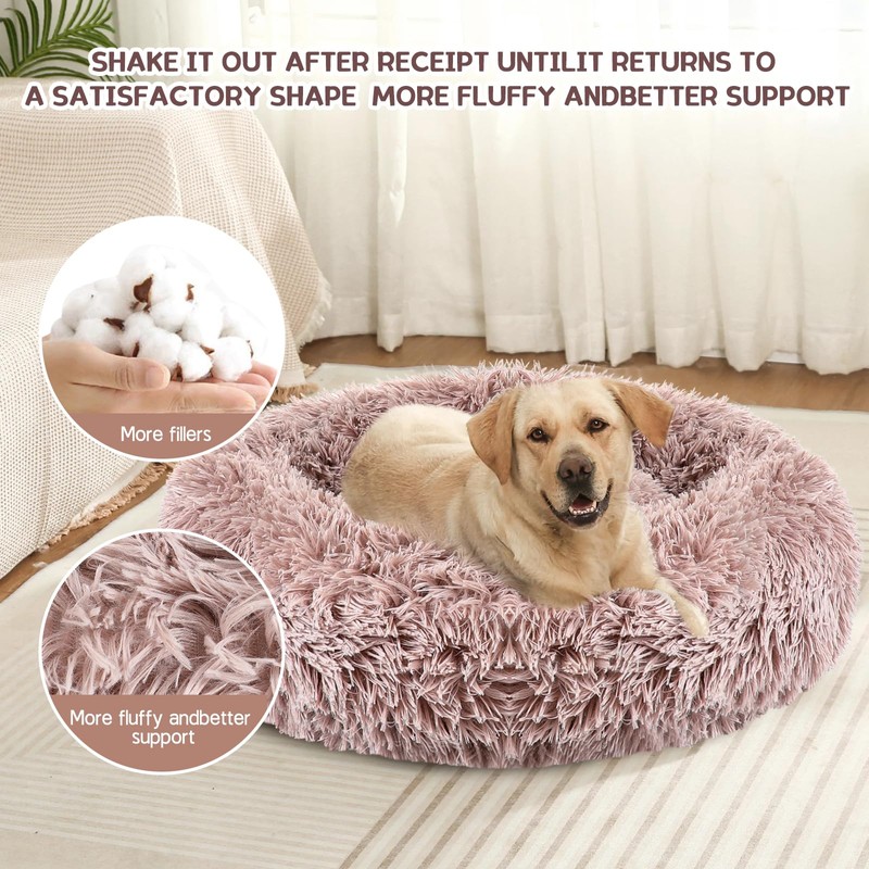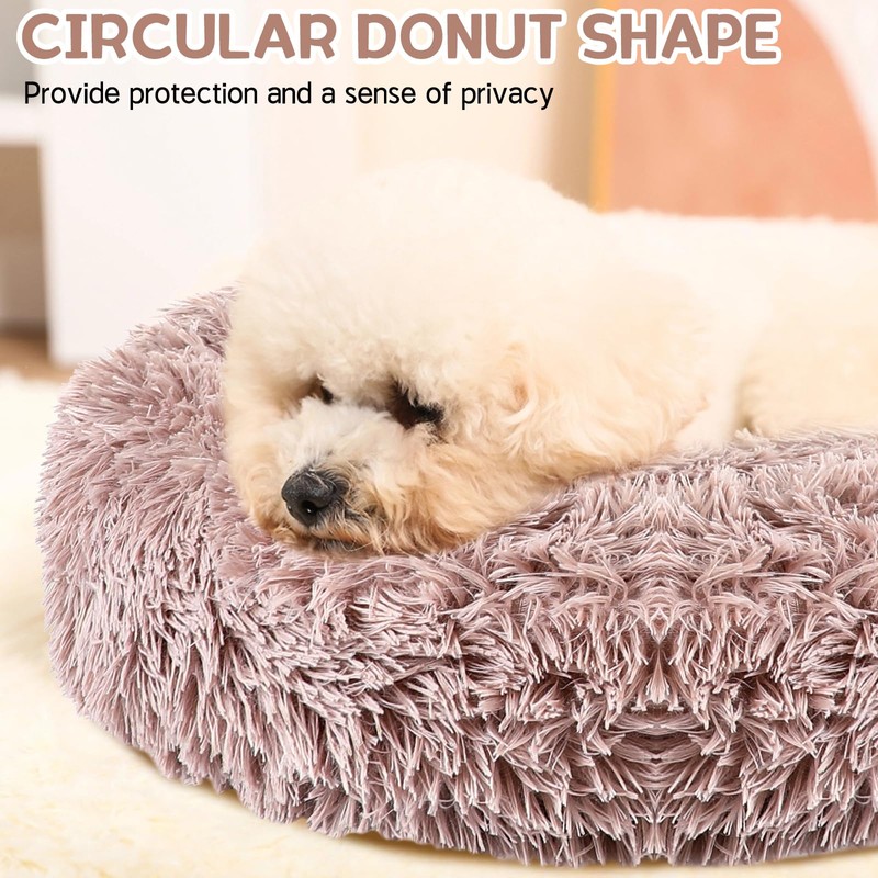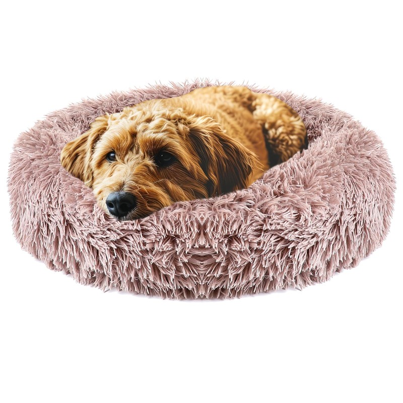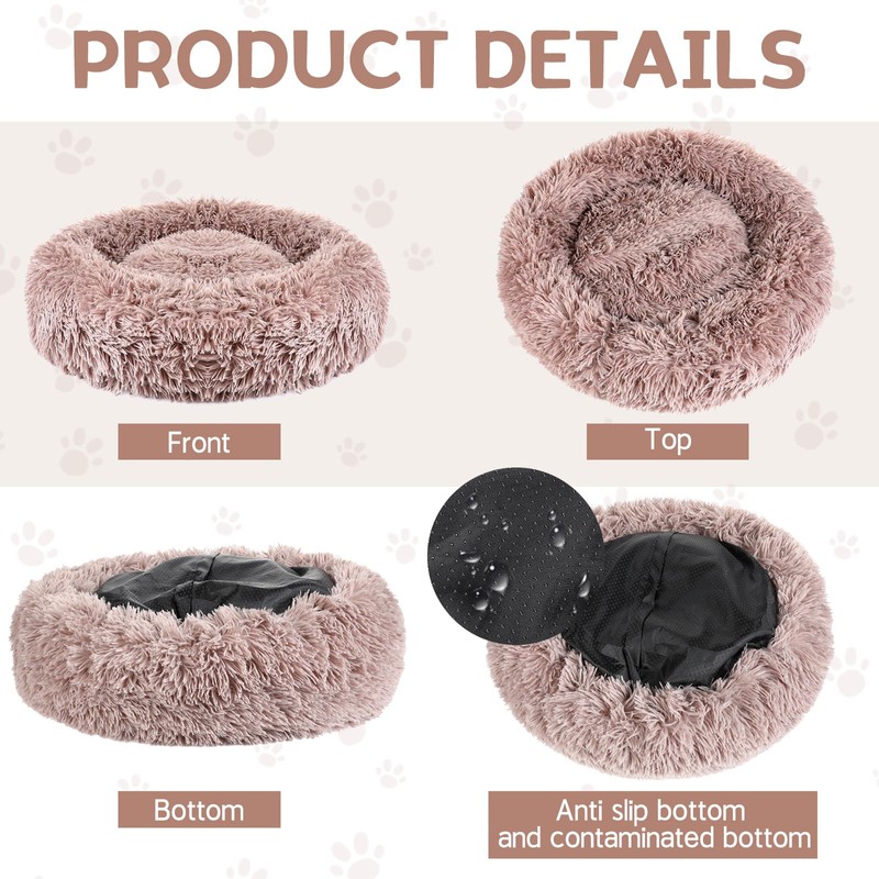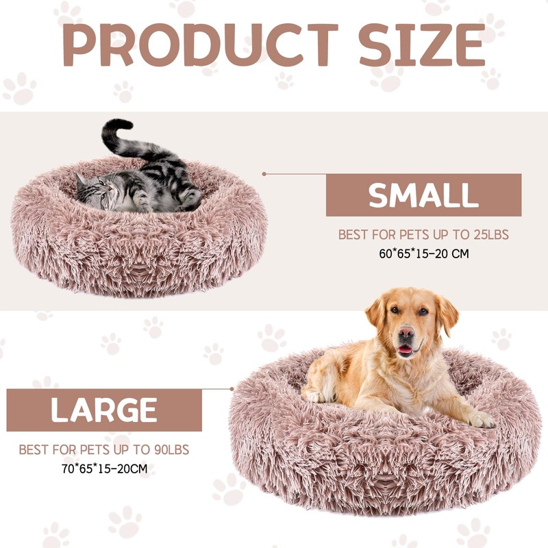 Dog Beds & Cat Bed, Anti-Anxiety Donut Cuddler Warming Cozy Soft Round Bed, Fluffy Faux Fur Plush Cushion Bed for Small Medium Dogs and Cats-Khaki M