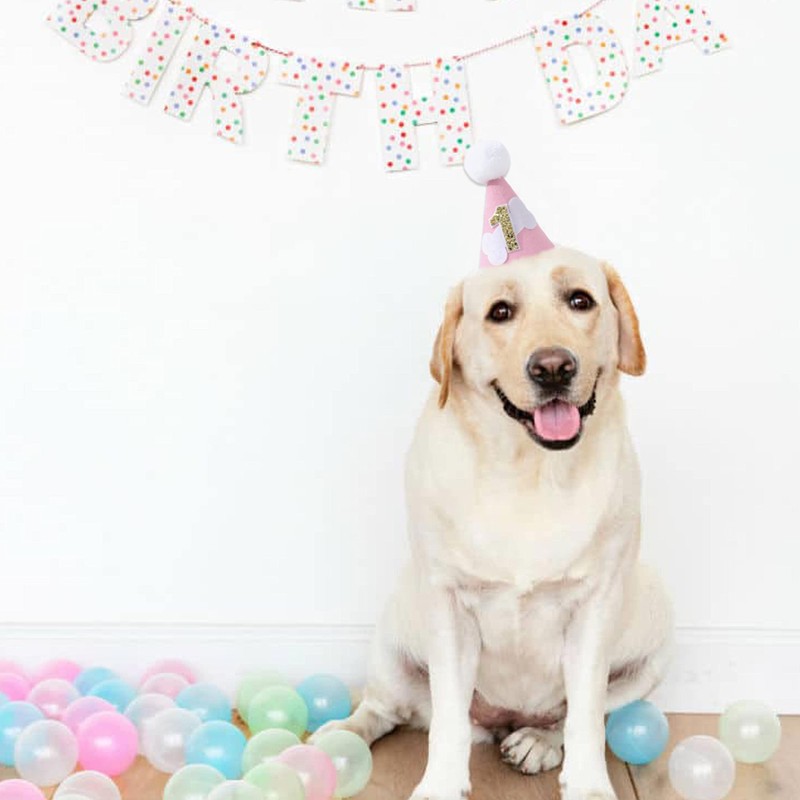 - SPECIAL DESIGN - Pink or blue felt cone hat with pom pom on the top, decorated with white felt dog bone and gold shiny number one. It will certainly attract the attention of your puppy dog.