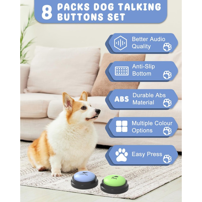 Dog Buttons for Communication, 8 Dog Talking Button Set, 30s Recordable Voice...