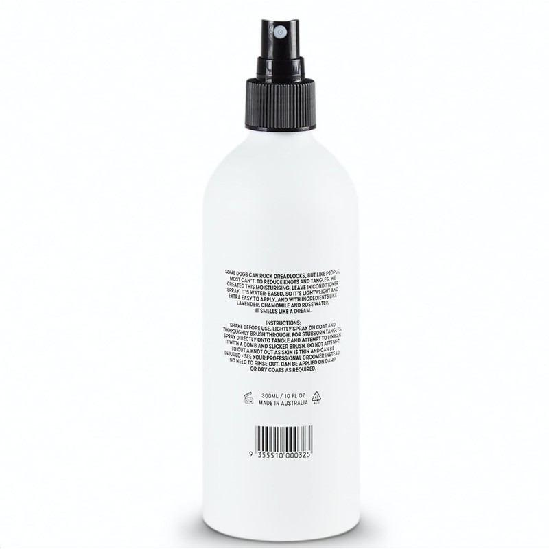 - HOW IT WORKS - Manage stubborn tangles by spraying the Leave in Conditioner directly onto the knot before loosening with your fingers or our recommended Comb. Keep working through until you’re able to brush it loose with the Slicker Brush.