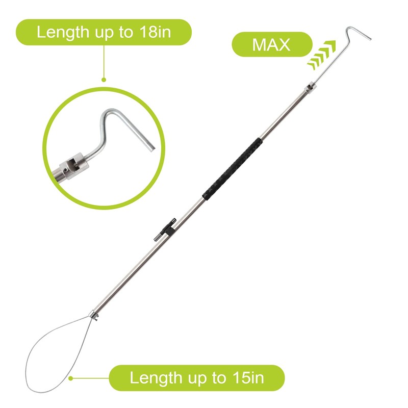 - Material: stainless steel. Length: 52 inch. Weight: 2.8LBS. Flashlight (AA Battery not include) + Animal Catch Pole