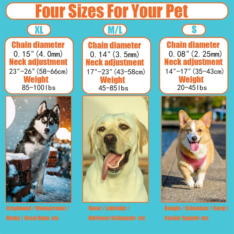 • โ˜‘๏ธ๐‹๐ข๐Ÿ๐ž๐ฅ๐จ๐ง๐  ๐”๐ฌ๐ž โซธ Measure your dogโ€™s neck and add 1 inches. This will be your initial collar size from which you can adjust the collar by removing or adding links (sold separately) to achieve a comfortable snug fit(Patented Products).