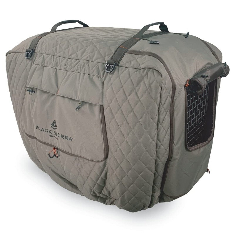 Black Sierra Large Insulated Dog Kennel Cover, Dog Crate Cover with Insulated Padding and Quilted Stitching, Dog Cage Cover with Side Accessory Zipper Pockets and Durable Enhance Your Pup's Comfort with the Black Sierra Large Insulated Dog Kennel Cover! Premium Insulation: Ensure your furry friend stays warm and snug. Quilted Elegance: Combining style and protection for your pet. Convenient Accessory Pockets: Keep essentials at your fingertips. Durable Windproof Fabric: Defend your best friend from the elements. Elevate your pet's well-being and style with the Black Sierra Kennel Cover. A cozy haven for your loyal companion.