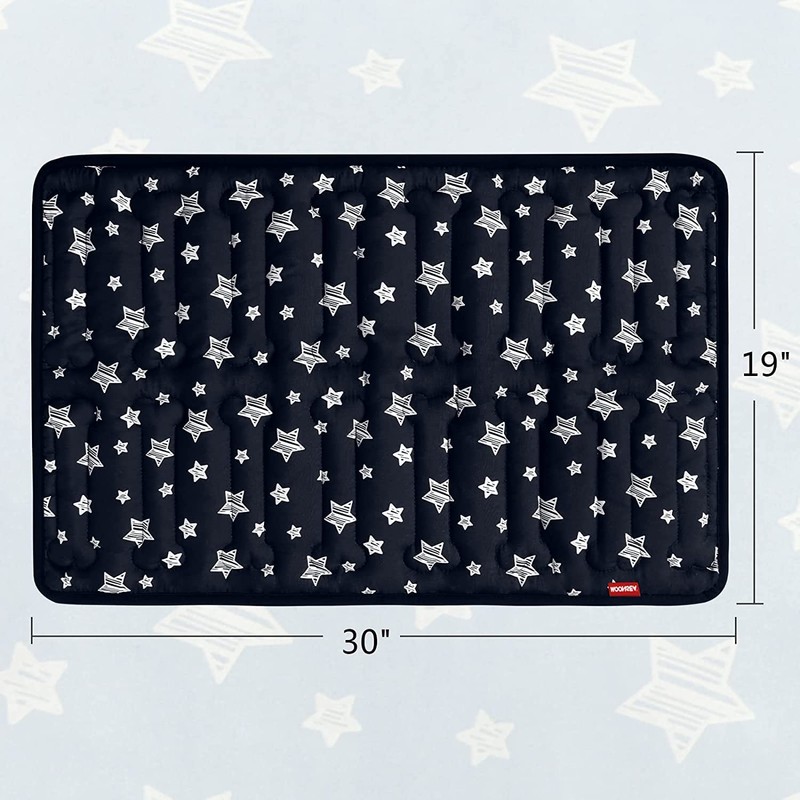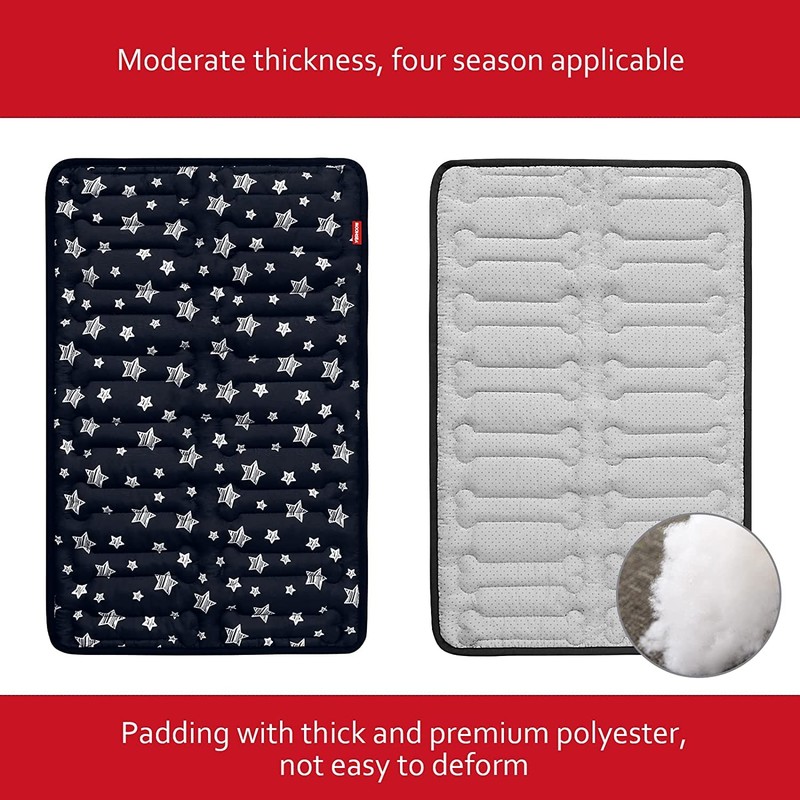 Dog Crate Mat, Soft Bed Mat with Cute Prints, Anti-Slip Bottom Dog Mat Washable, 30" x 19" for Small and Medium Dogs and Most Cats. Pet Mattress for Dog Sleeping Black Star