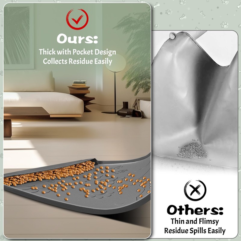- Enhanced Spill Control with Thick Raised Edges: Designed with extra-high, robust edges, our cat food mat effectively contains food and water spills, protecting your floors from messes. The durable edge construction not only prevents bending and damage but also ensures long-lasting performance, making it the ideal solution for even the messiest eaters. Enjoy a clean, tidy living space without the worry of accidental spills!