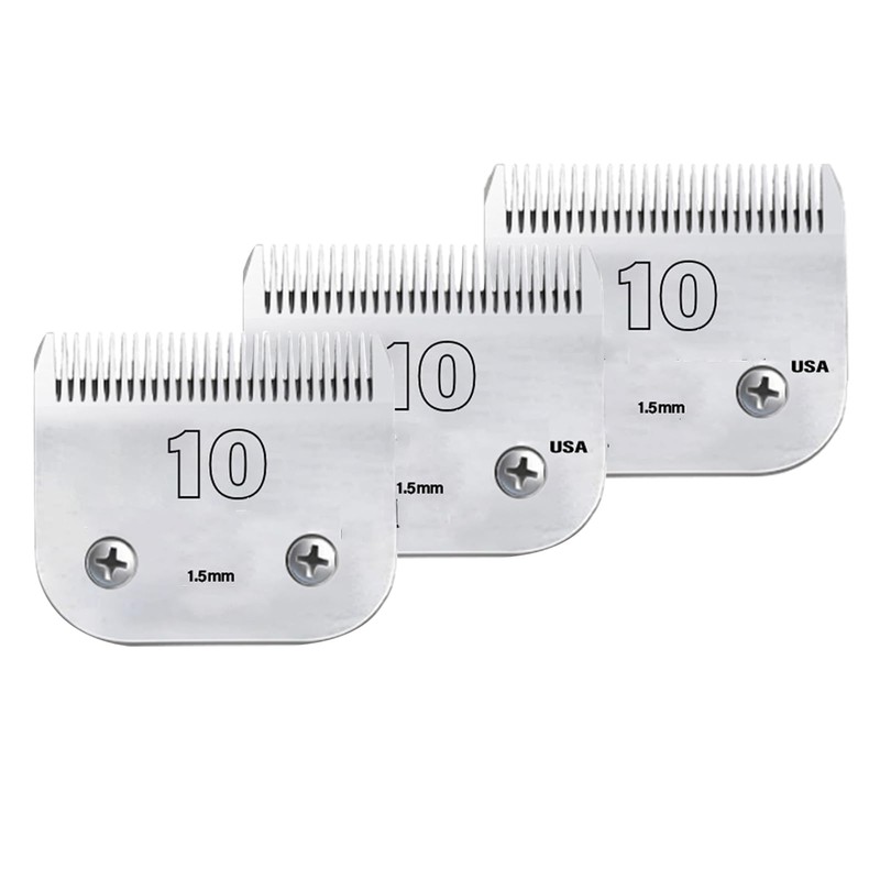 Dog Grooming Clipper Blade, Carbon Infused Steel, Ceramic Edge, 3-Pack #10, Compatible with Andis, Wahl, Oster