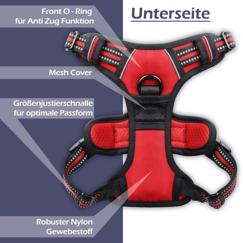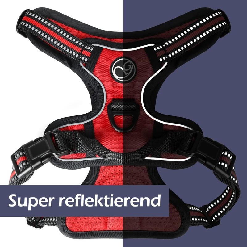 Safety in darkness and night: The harness has several adjustable straps, which allows it to be optimally adapted to the body shape of your four-legged friend. So the dog cannot run away even with great excitement. Highly visible reflective strips provide extra safety at night, so the dog will definitely not be overlooked by any motorist.