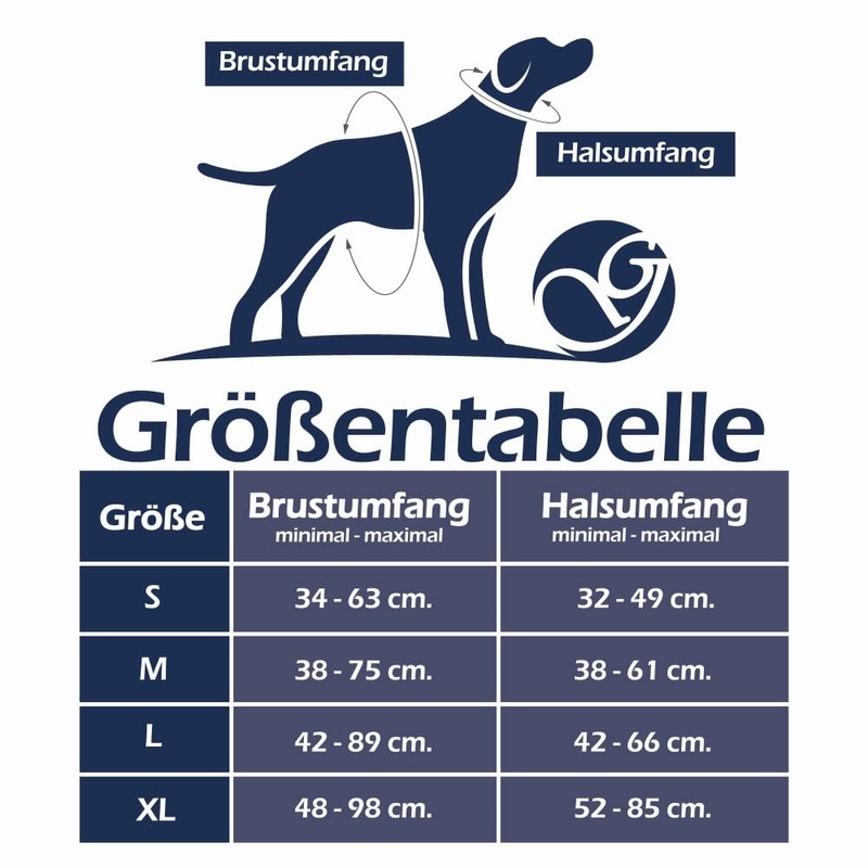 - Data size: S: chest circumference 34-63 cm, neck circumference 32-49 cm, weight 180 g, size M: chest circumference 38-75 cm, neck circumference 38-61 cm, weight 240 g, size L: chest circumference 42-89 cm, neck circumference 42-66 cm, weight 270 g, size XL: chest circumference 48-98 cm, neck circumference 52-85 cm, weight 290 g