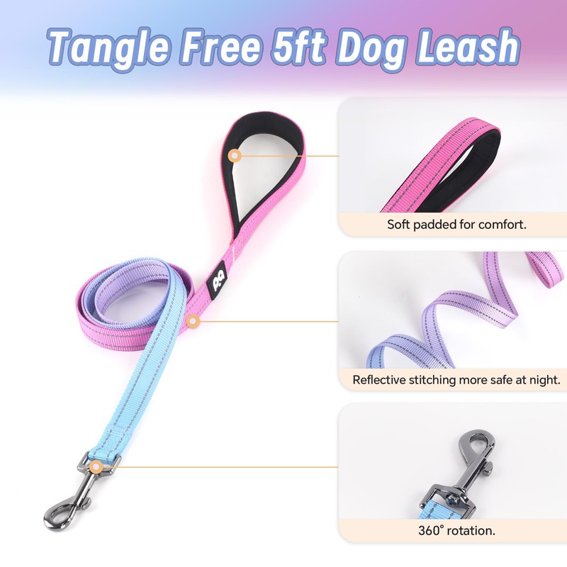 - Comfortable Cushioned Handle – Our cute dog leash features a cushioned handle on the end to give pet owners more comfort and control when managing their dog, so the leash doesn’t dig into your hand when they’re tugging,which means they’re ideal for jogging, running, trips to the dog park, hiking, late-night walks, and more.