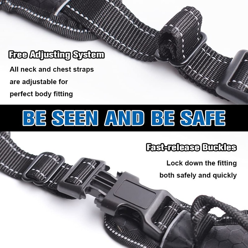 - ENJOY A COSY FIT: This dog reflective harness has dual elastic construction on belly straps, provides stretchability for more comfort and help absorb jerks, reduce strain and the risk of getting Hurt.