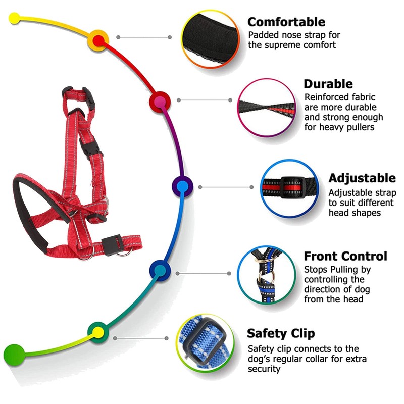5. Easy to Clean: Dog head harness is light weight, comfortable to wear, durable and easy to clean, just air dry.