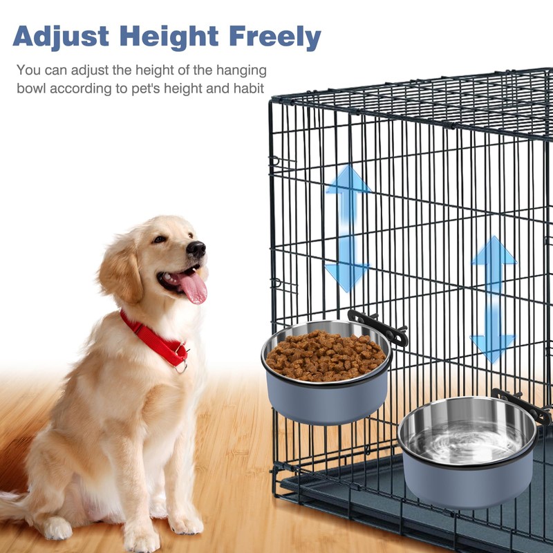 - Easy to Install & Adjust: Just clip against the kennel with two wing nuts to tighten it down. Fit for either horizontal or vertical, thick or thin cage bars. The height of no spill pet food water bowls are adjustable, you can adjust the height flexibly according to pet's height and habit