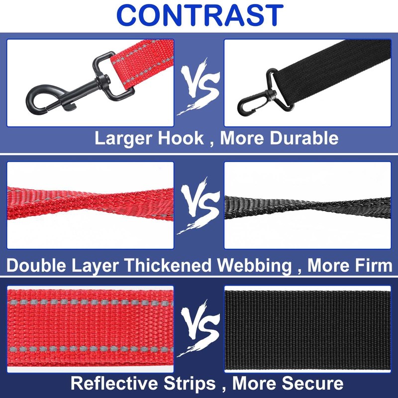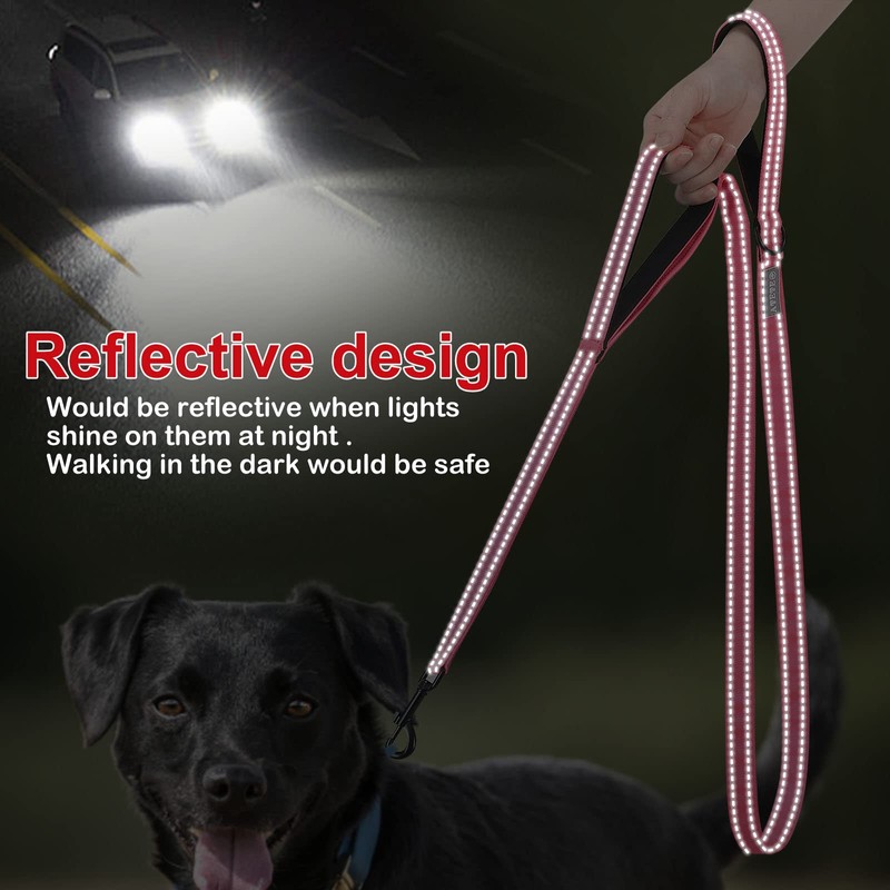 • ♥【Double -Sided Reflective】: Upgraded double-sided reflective leash features reflective stitching on both sides to improve its visibility,a car or bicycle is coming towards you and your dog , the reflective strip will shine brightly and attract the driver's attention. Can keep your doggie safe during evening walks or runs.