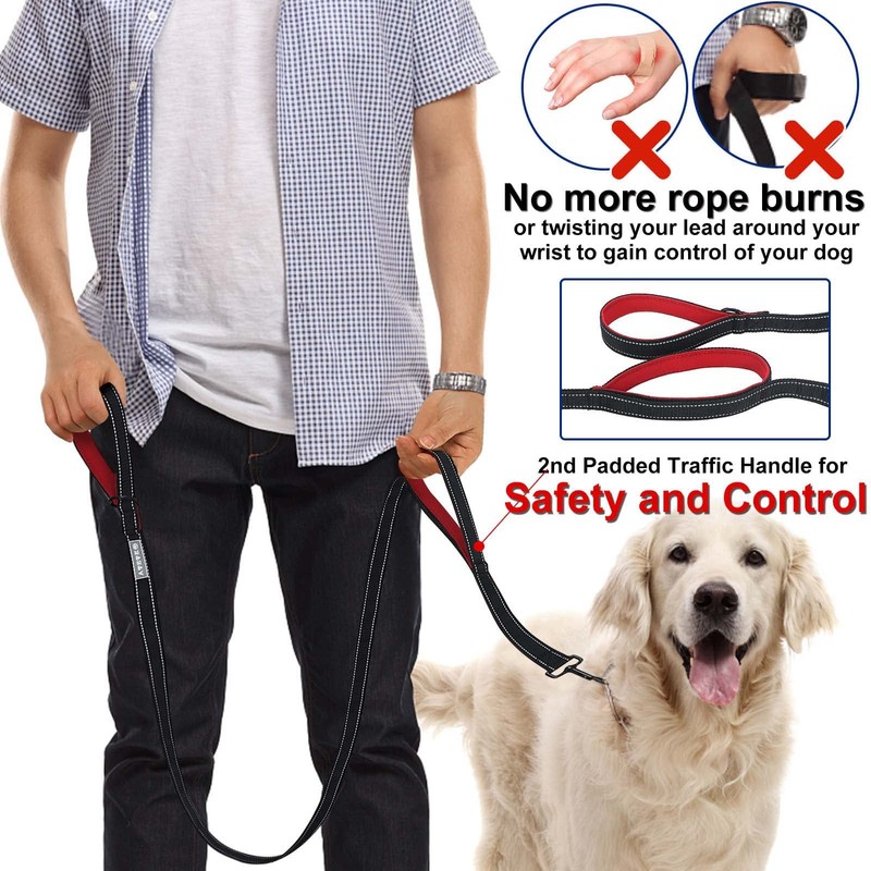 Dog Lead - With Two Padded Handles, Two Dog Leads Modes,Double-Sided Reflective Nylon Dog Leash for Training&Walking Perfect for Medium Dogs