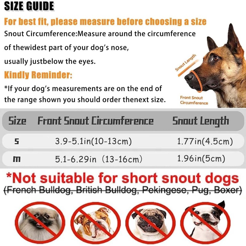 • Measure Your Dog Before Buying: S Snout 3.9-5.5", M Snout 5.3-7.5" Please refer to our size guide listed in product pictures 3, and 4 and our description. we recommend you to measure twice before buying. If you have any questions about sizing, you are welcome to contact us by providing your dog's measurements, we will help you pick an ideal size for your dog