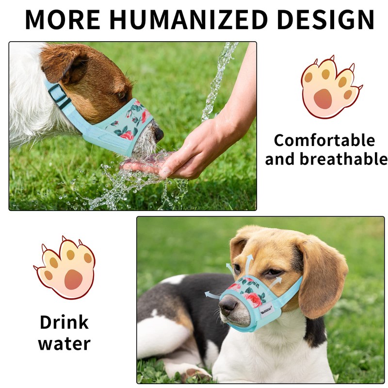 - UPGRADE HUMANIZED DESIGN - Different from the traditional dog muzzle, wearing the dog mouth cover, you can leave a proper space for your dog mouth to breathe, gasp and drink. The more humane design solves the inconvenience of traditional dog masks that do not drink water.