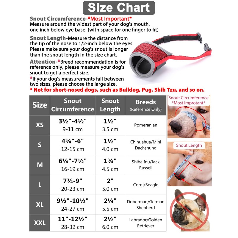 - Customized Fit-This adjustable straps can reinforce the muzzle for dogs to fit your dog's snout securely. You will not worry about the no bark muzzle being loose at any time! This awesome muzzle for dogs to prevent biting is designed to fit dogs of most sizes, shapes, and breeds.
