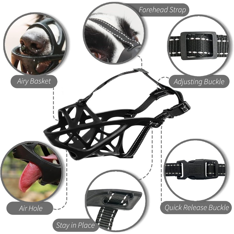- 【Breathable Hollow Design】Thanks to the wide hole of the basket muzzle, your dog can pant, drink water, and even feed through the muzzle. This design allows for maximum ventilation to prevent your dog from overheating and allows you to feed treats.