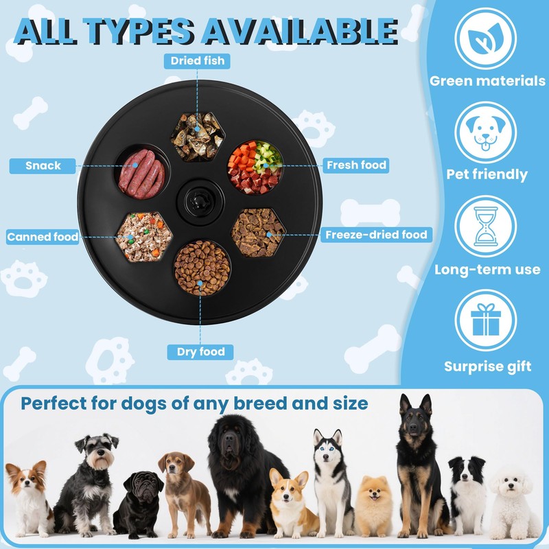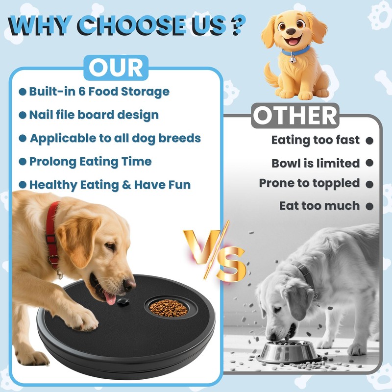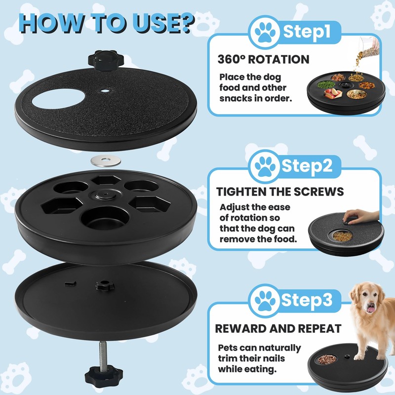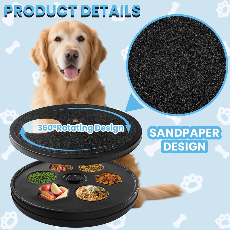 - 🐕Compartment & Swivel Design: This dog scratch board features 6 treat compartments for hiding various snacks, making mealtime more engaging and promoting healthier eating habits. The rotating 360° design serves as both a nail file and a fun toy, enhancing your dog’s play and grooming experience.