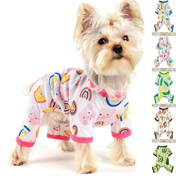 - 【Cute Design】This small dog onesie features a unique pink rainbow pig pattern, round neck, and long sleeves, adding a touch of personality to your pup's wardrobe.