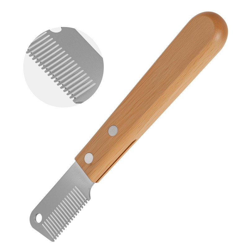 - Premium Materials for Durability: This dog professional stripping Comb features top-quality heat-treated stainless steel blades for superior strength and rust resistance. The ergonomic wooden handle ensures comfort and long-lasting use, making it perfect for both professional groomers and pet owners.