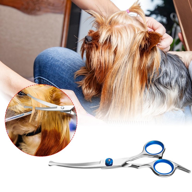 Practical grooming tool: these curved dog scissors are perfect for professional grooming of dogs and cats. With its special shape, it allows precise cutting and styling for a neat look, ideal for use with dog grooming scissors.