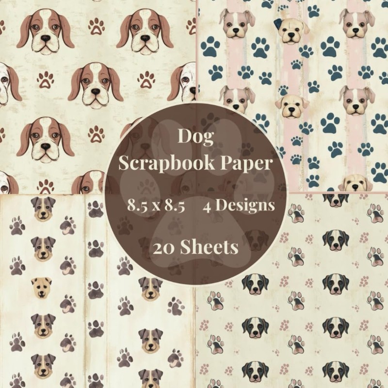 Dog Scrapbook Paper: Dogs Scrapbook Paper 8.5 x 8.5, Aesthetic Scrapbooking Supplies, Single Sided Scrapbook Paper, Dog Decorative Paper for backgrounds, Junk Journals and More.