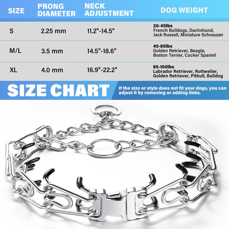 - 【For All Sizes of Breed】Whether your pet is a Pitbull, a German Shepherd, a Beagle, or a Bulldog, our collar is suitable for all size of breed, the package comes with extra links, it is convenient for any adjustment, three different size meets your different needs, suitable for small, medium, large and extra-large dogs, feel free to contact us when you are not sure about the size.