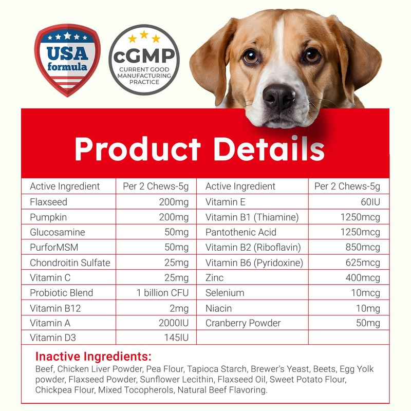 - 🍃NATURAL INGREDIENTS, SAFE AND SOUND: Our dog supplements & vitamins are packed with premium ingredients including Pumpkin & Cranberry powder, Flaxseed Oil, PurforMSM, Vitamins A, B12, C, D3 & E, Niacin, Zinc, Selenium and a blend of Probiotics. These treats offer natural, safe, and effective immune support for your pets. Expert-approved for peace of mind!