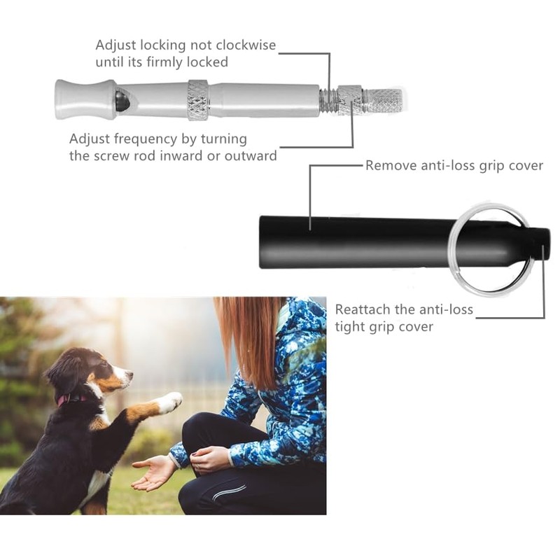 • 【Adjustable Dog Whistle】Dogs respond to different frequencies. This dog training whistle to make dogs come to you. You can train your dog to listen to different commands in this way. Our dog training whistle has a nut and screw that would adjust the frequency when turned. Notice your dog's reaction to each setting until your dog exhibits the strongest reaction.